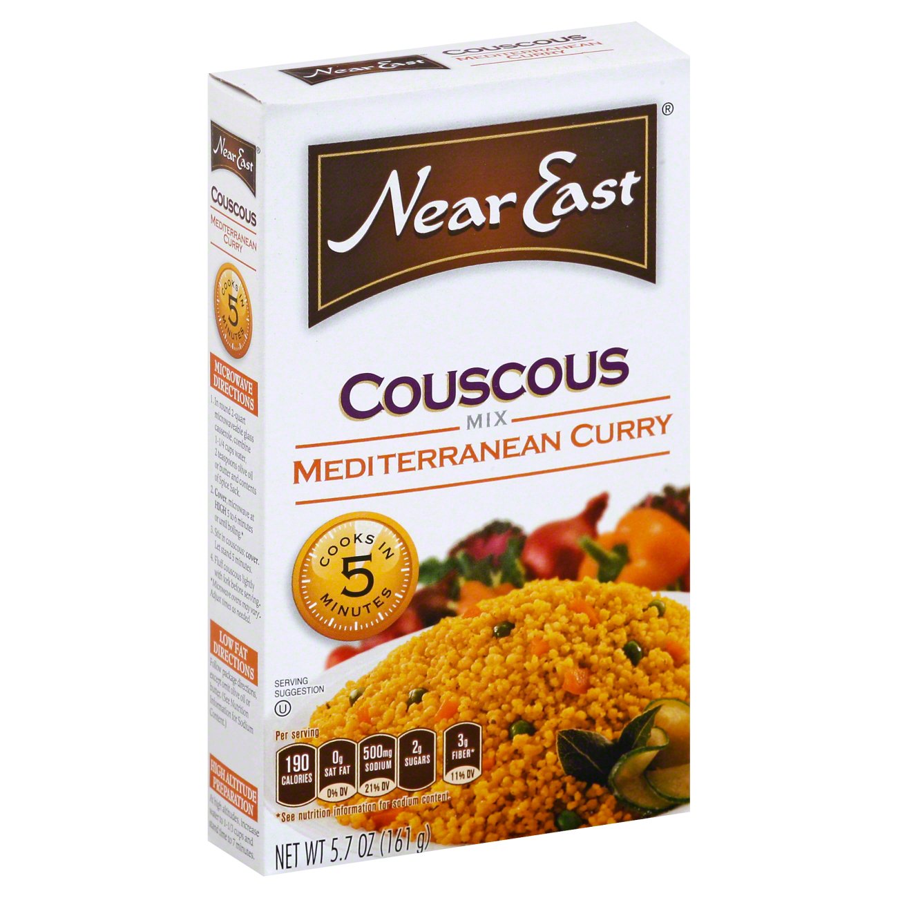 1% fat, 85% carbs, 14% protein. For additional information about a product, please contact the manufacturer. This is part of our comprehensive database of 40,000 foods including foods from hundreds of popular restaurants and thousands of brands. You should not rely solely on the information presented here and you should always read. Near east mediterranean curry couscous, 5.7 oz, 2 ct.